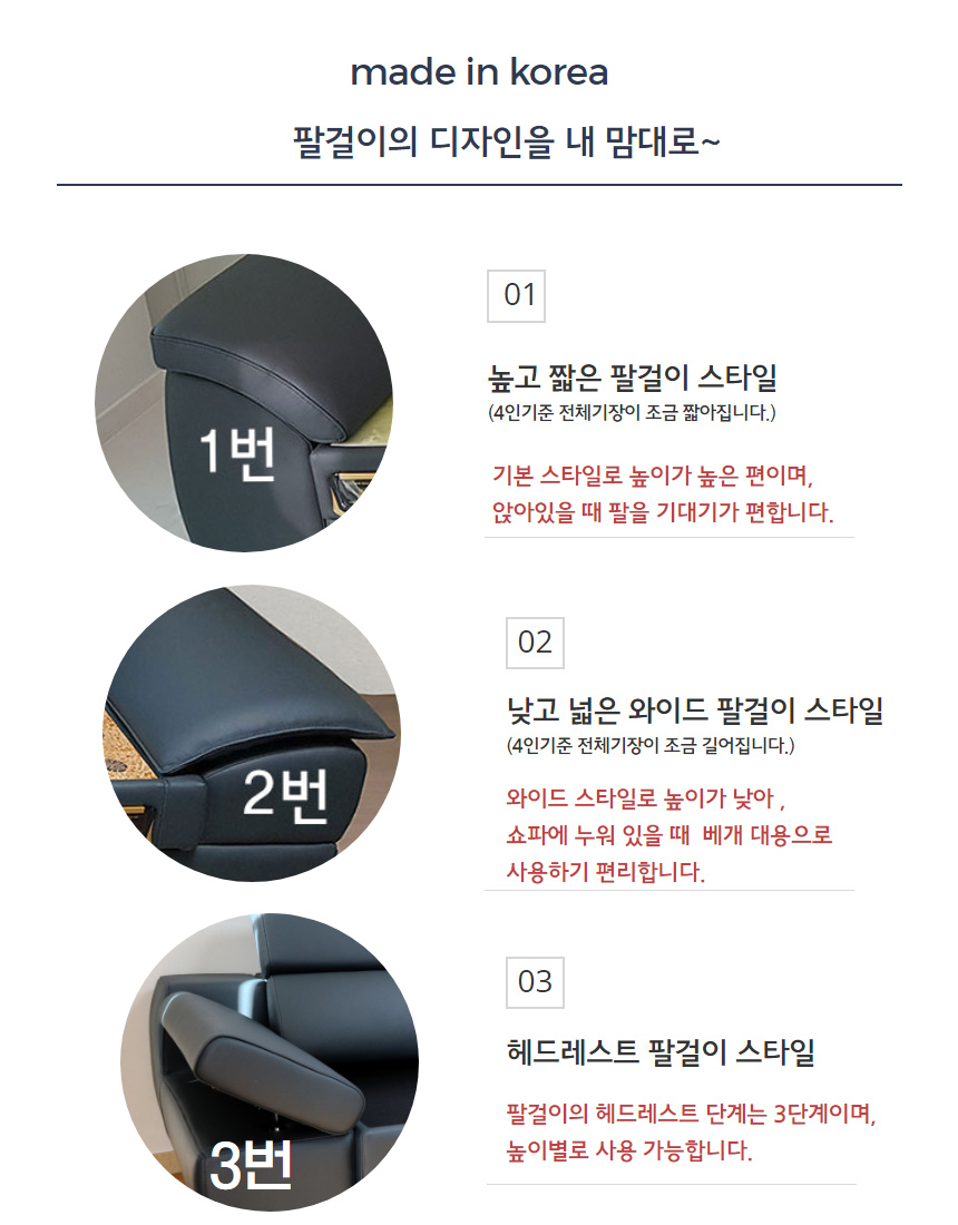 팔걸이는 일반형이며, 높이가 높아 팔을 올리기에 좋은 디자인입니다.