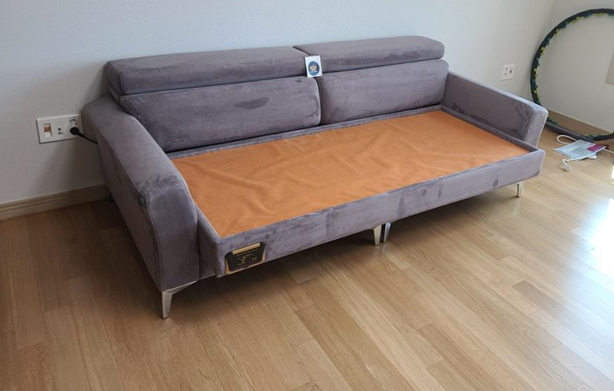 보시는 제품은 스웨이드 가죽으로 제작된 돌쇼파 입니다.