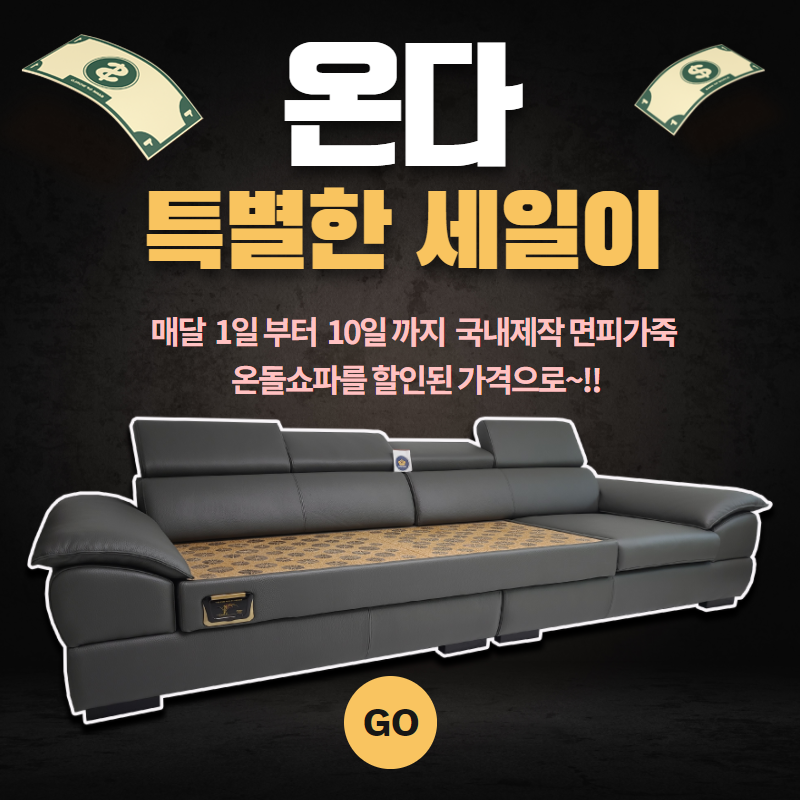 매달 1일부터 10일까지 공동제작 형식으로 저렴한 가격에 만나볼수 있는 면피가죽 돌쇼파와