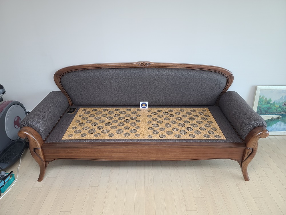 보니타 제품은 제브라 원목에 롤가죽으로 만든 카우치 온돌쇼파 입니다.