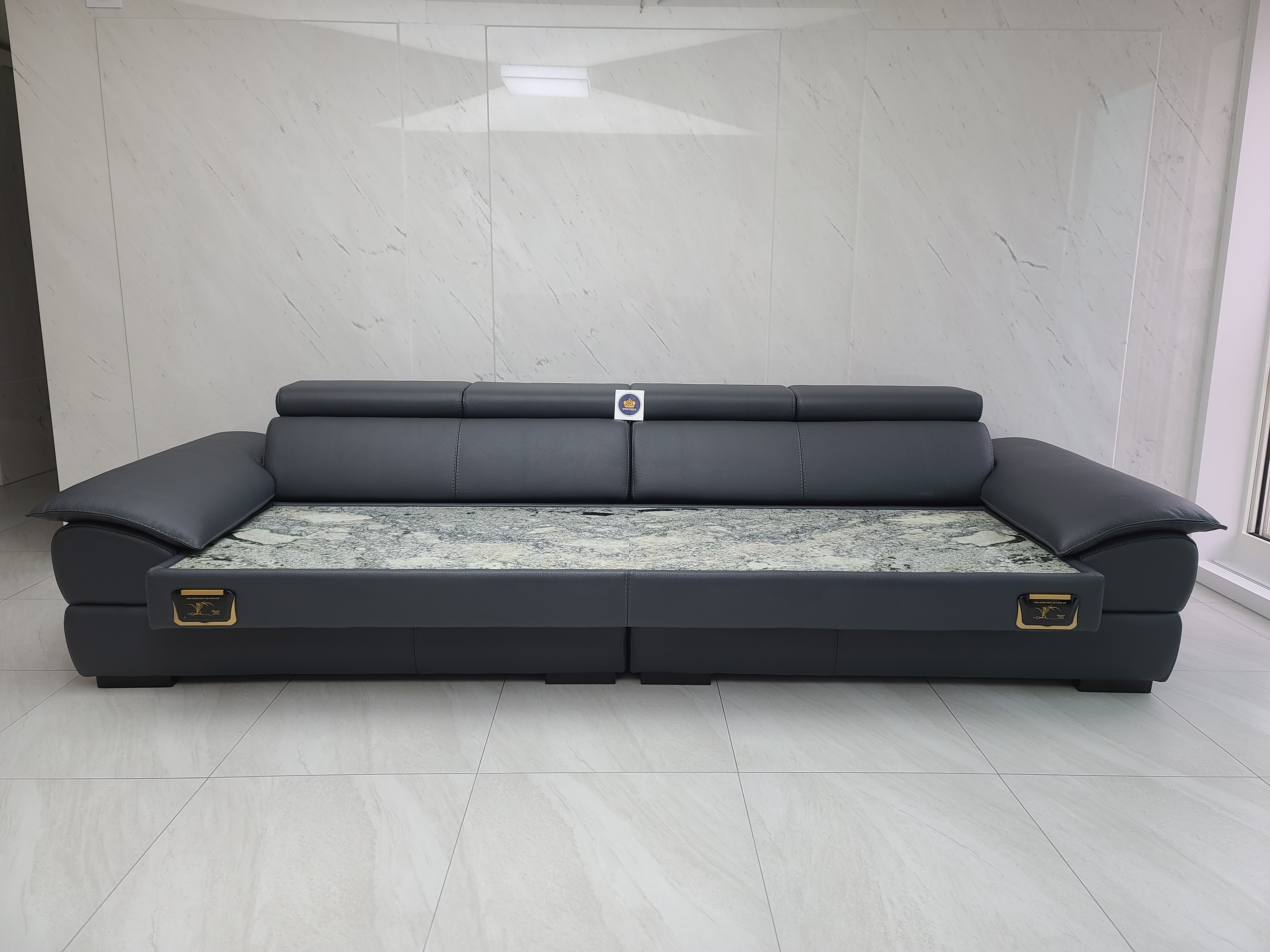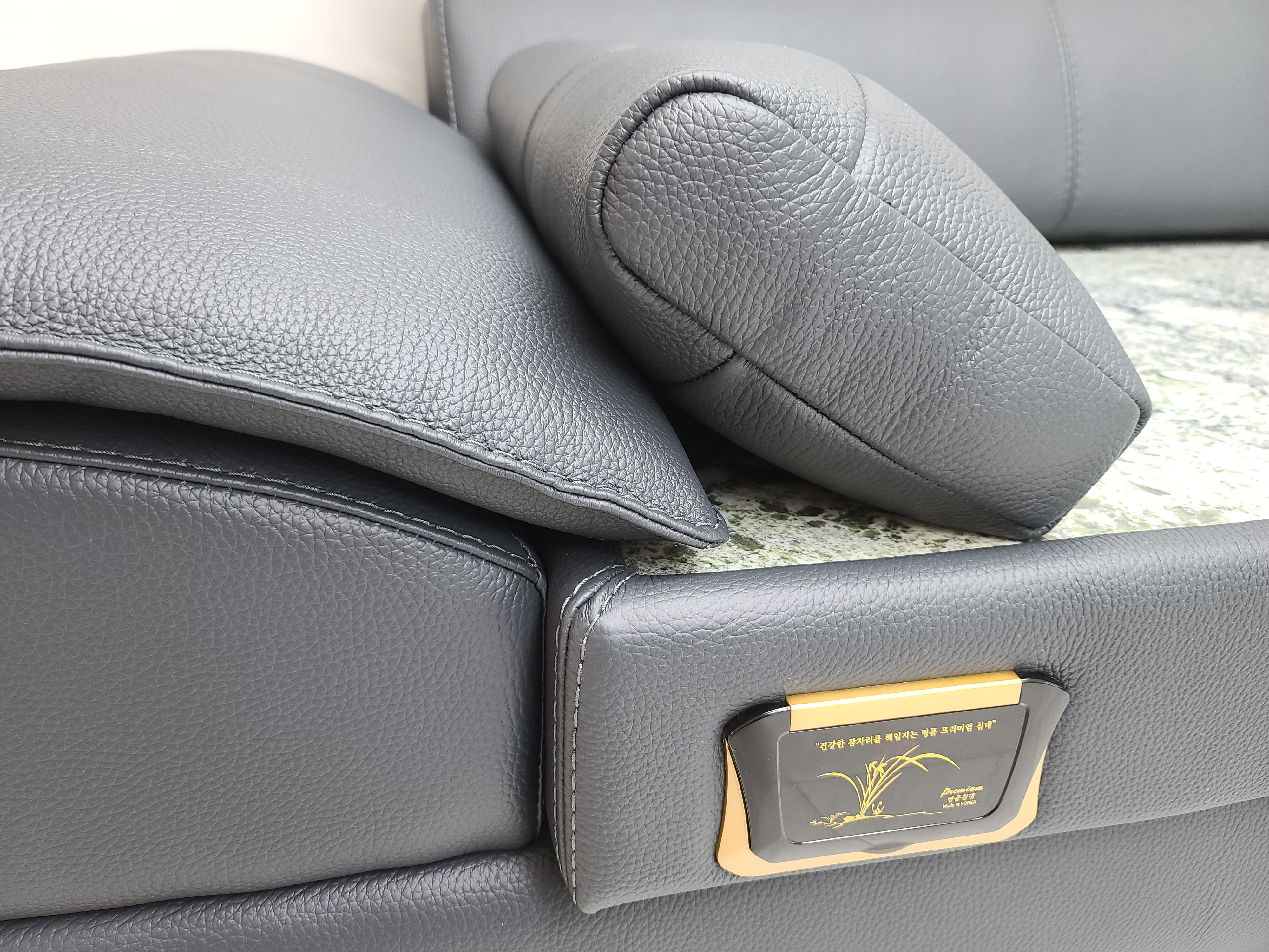 국내제작 되어지는 맞춤형 4인용 돌소파는 헤드레스트 부분이 독일산 리클라이너로 제작이 됩니다.
