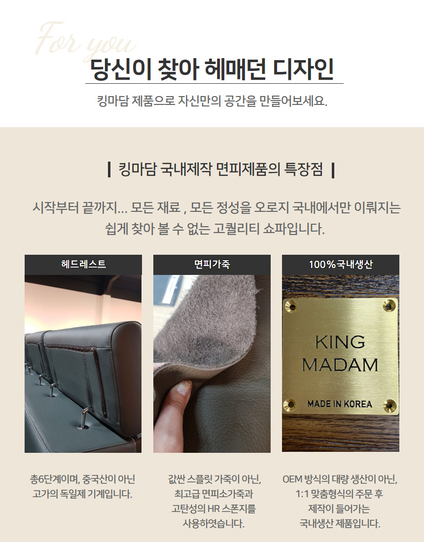 기존에 판매되는 국내제작 면피가죽쇼파는 고객님께서 원하실 경우