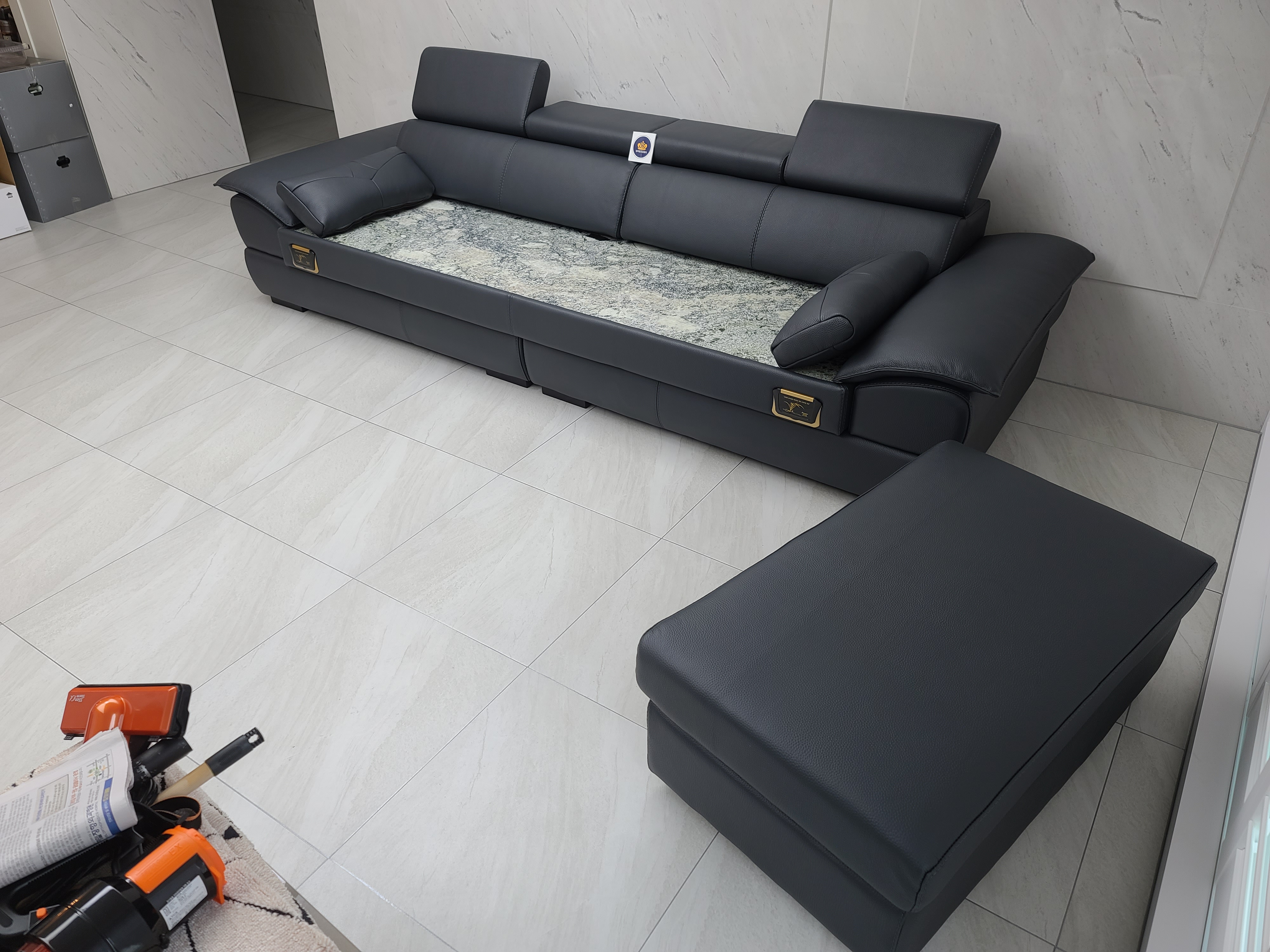 가죽쇼파와 돌소파의 만남 !